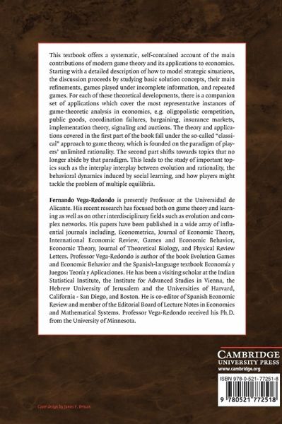 This textbook offers a systematic, self-contained account of the main contributions of modern game theory and its applications to economics. Starting with a detailed description of how to model strategic situations, the discussion proceeds by studying basic solution concepts, their main refinements, games played under incomplete information, and repeated games. For each of these theoretical developments, there is a companion set of applications that cover the most representative instances of game-theoretic analysis in economics, e.g. oligopolistic competition, public goods, coordination failures, bargaining, insurance markets, implementation theory, signaling and auctions. The theory and applications covered in the first part of the book fall under the so-called 'classical' approach to game theory, which is founded on the paradigm of players' unlimited rationality. The second part shifts towards topics that no longer abide by that paradigm. This leads to the study of topics such as the interplay between evolution and rationality.