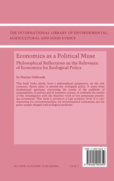 This book looks afresh, from a philosophical perspective, on the role economic theory plays in present-day ecological policy. It starts from fundamental questions concerning the nature of the problem of sustainability, of politics, and of economic science. It confronts the results of this investigation with the theoretical work of two prominent present-day economists. This book is written at a high academic level. It will be of interest to environmentalists, environmental economists, and for policy people charged with ecological problems.