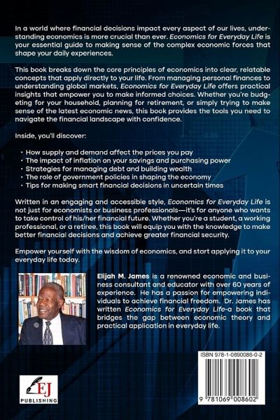 "Economics for Everyday Life" provides a practical and engaging journey into the world of economics, making it accessible to everyone. Rather than presenting economic principles as abstract or theoretical, this book bringsthem to life by showinghow they directlyaffect the choices we make every day. Whether it's deciding how to spend your money,understanding why pricesrise, or thinkingabout how government policies influence your community, this book connects the dots between the complex world of economics and your daily life. Through clear explanations and relatable examples, this book simplifies difficult concepts like supply and demand, inflation, and financial management, ensuring readers don't need prior knowledge or expertise. It empowers individuals to understand how economics impactsnot only their personal decisions but also the broader forces shaping the world around them. By demystifying economics, this book equips readerswith valuable tools to navigatethe economy, make informed decisions, and ultimately improve their financial and personal well-being. Key Benefits:Clear and Accessible: No prior knowledge of economics is needed. The content is designed to be understood by anyone, from students to professionals, and even retirees. Real-Life Application: Discover how economic principles influence everyday decisions, such as budgeting, investing, and understanding inflation. Financial Empowerment: Gain the knowledgeto make smarterfinancial choices and confidently navigate the economy. Comprehensive Topics: From supply and demandto personal financial management, this book covers essential topics in a way that is practical and easy to apply. Whether you're looking to improve your financial well-being or simply want to graspthe economic forces that shape our world, "Economics for Everyday Life" is your essential guide. Embrace the power of economics and use it to enhance your quality of life.