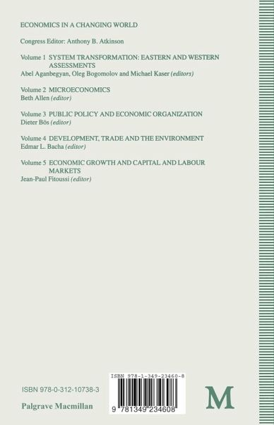 This book is Volume 4 of the Proceedings of the 10th World Economic Congress held in Moscow in 1992 under the auspices of the International Economic Association. It considers various aspects of economic policy and development and issues in developing countries of domestic economic management and policy reform, under conditions of increased economic openness.
