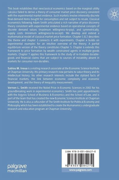 This book establishes that neoclassical economics based on the marginal utility calculus failed to derive a theory of consumer market price discovery consistent with the experimental market evidence. Such markets involve inherently discrete final-demand items bought for consumption and not subject to resale. Classical economists following Adam Smith articulated a rich narrative of price discovery theory consistent with experimental evidence based on operational concepts of discrete demand values (maximum willingness-to-pay), and symmetrically, supply costs (minimum willingness-to-accept). We develop and extend a mathematical model of classical market price formation. Chapter 1 & 2 describes this theme and chapter 3 connects it with experiments. Chapter 4 builds on experimental examples for an intuitive overview of the theory. A partial equilibrium version of the theory constitutes Chapter 5. Chapter 6 extends this framework to price formation by wealth constrained agents in multiple-goods markets. Chapter 7 applies this framework to the study of re-tradable durable-goods and financial claims that are subject to sources of instability absent in markets for consumer non-durables.