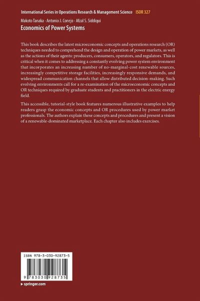 This book describes the latest microeconomic concepts and operations research (OR) techniques needed to comprehend the design and operation of power markets, as well as the actions of their agents: producers, consumers, operators, and regulators. This is critical when it comes to addressing a constantly evolving power system environment that incorporates an increasing number of no-marginal-cost renewable sources, increasingly competitive storage facilities, increasingly responsive demands, and widespread communication channels that allow distributed decision-making. Such evolving environments call for a re-examination of the microeconomic concepts and OR techniques required by graduate students and practitioners in the electric energy field.