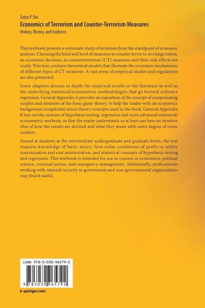 This textbook presents a systematic study of terrorism from the standpoint of economic analysis. Choosing the kind and level of measures to counter terror is, to a large extent, an economic decision, as counterterrorism (CT) measures and their side effects are costly. This text, contains theoretical models that illustrate the economic mechanisms of different types of CT measures. A vast array of empirical studies and regularities are also presented.