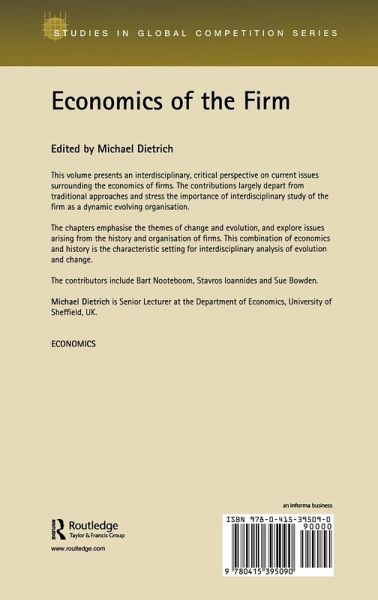 This book brings together some of the world's leading experts to present an interdisciplinary, critical perspective on current issues surrounding the economics of the firms. It eschews standard approaches to the economics of the firm (including analysis of transaction costs) in favour of a more interdisciplinary outlook, with evolutionary economics taken into account. Central to this is the concept of trust and the belief that any approach to the firm must recognize cultural and political factors. The chapters emphasize the themes of change and evolution and explore issues arising from the history and organization of firms. An important book, with contributions from Bart Nooteboom, Stavros Ioannides and Werner Holzl, this is an invaluable resource for postgraduate students of economics.