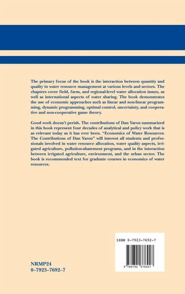 "This book should be read and used by environmental economists, water and environmental managers, planners, policy makers and academics. This publication is not just relevant to Israel but to professionals dealing with economic evaluation of water quality in arid regions."