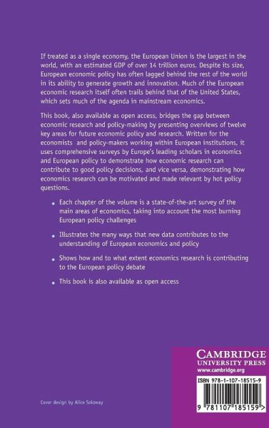 If treated as a single economy, the European Union is the largest in the world, with an estimated GDP of over 14 trillion euros. Despite its size, European economic policy has often lagged behind the rest of the world in its ability to generate growth and innovation. Much of the European economic research itself often trails behind that of the USA, which sets much of the agenda in mainstream economics. This book, also available as open access, bridges the gap between economic research and policymaking by presenting overviews of twelve key areas for future economic policy and research. Written for the economists and policymakers working within European institutions, it uses comprehensive surveys by Europe's leading scholars in economics and European policy to demonstrate how economic research can contribute to good policy decisions, and vice versa, demonstrating how economics research can be motivated and made relevant by hot policy questions. This title is available as Open Access on Cambridge Core.