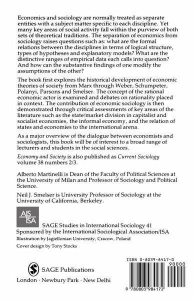 This is the first overview of the interface between economics and sociology. Normally considered quite separately, the volume reconciles the disciplines. Amongst the many questions considered are: the formal relationship between the two disciplines; the distinctive ranges of empirical data which each discipline calls into question; how the substantive findings of one discipline can modify the assumptions of the other. The book explores the historical development of economic theories of society and the concept of the rational economic actor and contextualizes debates on rationality. The contribution of economic sociology is demonstrated through critical assessments of key areas of the literature such as the state\market division in capitalist and socialist economies, the informal economy and the relation of states and economies to the international arena. As a major overview of the dialogue between economists and sociologists, this book will be of interst to a broad range of lecturers and students in the social sciences. Economy and Society is being published simultaneously as Volume 38, issues 2 - 3 of Current Sociology.