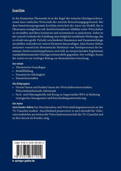 In der klassischen Ökonomik ist in der Regel der statische Gleichgewichtszustand einer einfachen Wirtschaft der zentrale Betrachtungsgegenstand. Mit dem Simulationsprogramm EconSim entwickelt der Autor ein Modell, das es Ökonomen ermöglichen soll, deutlich komplexere Abbilder realer Wirtschaften zu erschaffen und diese konsistent und systematisch zu analysieren. Dabei ist der zentrale Gedanke die Schaffung eines möglichst modularen Werkzeugs, das es erlaubt eine große Vielzahl verschiedener Situationen und Zusammenhänge abzubilden und jederzeit weitere Elemente hinzuzufügen. Janis Kesten-Kühne analysiert wesentliche ökonomische Merkmale von Marktprozessen für bestimmte Marktvermittlungsformen und stellt sie entsprechenden Ergebnissen standardökonomischer Gleichgewichtsmodelle gegenüber. Der verfolgte Ansatz des Autors ist ein wichtiger Beitrag zur ökonomischen Forschung.