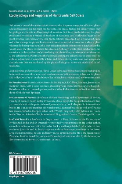 Preface.- Role of Ca2+ in alleviating salt stress.- An overview on the role of plant volatile organic compounds (VOCs) in salt stress.- Adaptive Plasticity of salt stressed root systems.- Salt-stressed plants and their responses to cadmium.- Soil and water management for sustained agriculture in alluvial plains and floodplains exposed to salinity: A case study of Neretva river estuary.- In vitro culture and salt stress in plants.- Role of Arbuscular mycorrhiza in inducing resistance to salinity.- The role of NO in alleviating salt stress in plants.- Plant growth regulators and biomass partitioning in crops under salinity.- Salt stress and Photosynthesis.- Role of Jasmonates in Plant Adaptation to Stress.- Salt stress and nitrogen and phosphorus metabolism in plants.- Proline and glycinebetaine: chemistry, synthesis and role in plants.- Non-enzymatic antioxidants and ROS as signaling molecules in plants under salt stress.- Role of polyamines in alleviating salt stress.- Salt stress: Causes, Types and Physiological Responses of Plants.- Role of Phytochrome in Stress Tolerance.- Sulfur: Metabolism and role in plants under salt stress.- Breeding citrus.- Index.