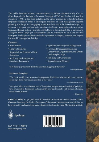 "This richly illustrated book completes Robert G. Baily's celebrated study of ecoregions, begun in the landmark Ecosystem Geography (1996) and further articulated in Ecoregions (1998). ... This book will be welcomed by land and resource managers, landscape architects and urban planners, ecologists, students, and anyone interested in ecology-based design." (Ethology, Ecology & Evolution, Vol. 14 (4), 2002)