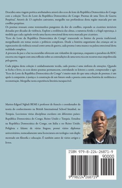 Descubra uma viagem poética arrebatadora através dos ecos do leste da República Democrática do Congo com a coleção "Ecos do Leste da República Democrática do Congo: Poemas de uma Terra de Guerra Perpétua". Através de 13 capítulos cativantes, mergulhe nas profundezas desta região marcada por um conflito perpétuo. Os poemas ressoam como testemunhos pungentes da dor do conflito, expondo as cicatrizes invisíveis deixadas por décadas de violência. Explore a resiliência das almas, a natureza ferida e a frágil esperança, à medida que cada capítulo revela uma faceta emocional desta terra marcada por cicatrizes. "Ecos do Leste da República Democrática do Congo" transcende os limites da poesia tradicional, mergulhando em temas sociais e políticos complexos. Desde a história angustiante das crianças até às repercussões da violência sexual como arma de guerra, cada poema é uma nuance na paleta emocional desta realidade complexa. A procura da paz e a luz na escuridão oferecem um vislumbre de esperança, enquanto o paradoxo da RDC encerra esta viagem com uma reflexão sobre as contradições de uma terra rica em recursos mas empobrecida pela guerra. Cada página desta coleção é cuidadosamente tecida, cada poema é uma sinfonia de emoções. Quando se fecha o livro, os ecos destes poemas permanecem, convidando os leitores a sentir, compreender e agir. "Ecos do Leste da República Democrática do Congo" é muito mais do que uma coleção de poemas; é um apelo à compaixão, à justiça e à construção de um futuro onde a poesia conta uma história de resiliência e reconstrução. Mergulhe nesta experiência literária inesquecível.