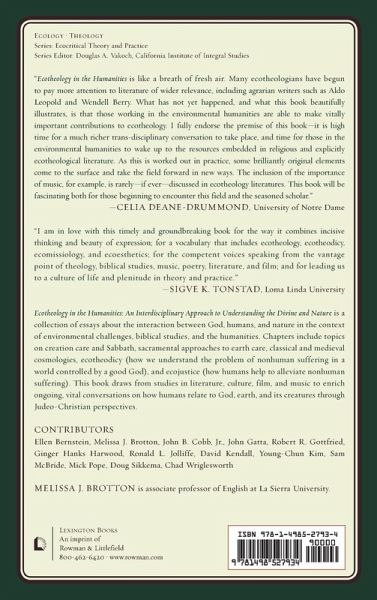 Foreword John Cobb Jr. Introduction "Heaven and Nature Sing": Introduction Melissa Brotton Section I: Creation Care and the Sabbath Chapter 1 Friends of the Creator: A Theological Foundation for Earth keeping Ethics Ginger Harwood Chapter 2 A Biblical Land Ethic? A Response to Aldo Leopold Ellen Bernstein Chapter 3 Sanctification as Impetus for Creation Care in Adventism Young Chun Kim Section II: Sacramental Approaches Chapter 4 Ecotheology and Enchantment: How Wendell Berry Helps Re vision the World Doug Sikkema Chapter 5 Salmon Theology and Spokane Falls: Catholicism and Restorative Justice in Sherman Alexie's Poetry Chad Wriglesworth Section III: Classical and Medieval Cosmologies and Music Chapter 6 "All Nature Sings and Round Me Rings the Music of the Spheres": Christianity and the Transmission of a Cosmic Ecomusicology David Kendall Chapter 7 Stewards of Arda: Creation and Sustenance in J.R.R. Tolkien's Legendarium Samuel McBride Section IV: Ecotheod