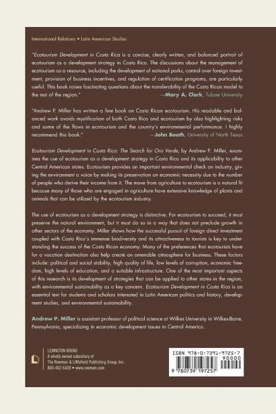 Ecotourism Development in Costa Rica: The Search for Oro Verde, by Andrew P. Miller, examines the use of ecotourism as a development strategy in Costa Rica and its applicability to other Central American states. Ecotourism provides an important environmental check on industry, giving the environment a voice by making its preservation an economic necessity due to the number of people who derive their income from it. The move away from agriculture to ecotourism is a natural fit because many of those who are engaged in agriculture have extensive knowledge of plants and animals that can be utilized by the ecotourism industry. The use of ecotourism as a development strategy is distinctive. For ecotourism to succeed, it must preserve the natural environment, but it must do so in a way that does not preclude growth in other sectors of the economy. Miller shows how the successful pursuit of foreign direct investment coupled with Costa Rica's immense biodiversity and its attractiveness to tourists is key to understanding the success of the Costa Rican economy. Many of the preferences that ecotourists have for a vacation destination also help create an amenable atmosphere for business. These factors include: political and social stability, high quality of life, low levels of corruption, economic freedom, high levels of education, and a suitable infrastructure. The most important part of this research is its development of strategies based upon the Costa Rican model that would be useful for other states in the region. When looking at whether states can replicate the development strategy of Costa Rica, environmental sustainability is an important concern. Ecotourism Development in Costa Rica is an essential text for students and scholars interested in Latin American politics and history, development studies, and environmental sustainability.