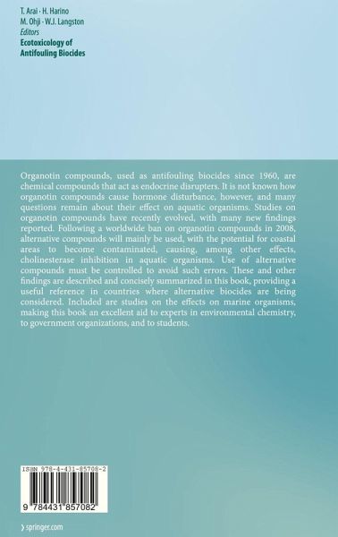 Organotin compounds, used as antifouling biocides since 1960, are chemical compounds that act as endocrine disrupters. It is not known how organotin compounds cause hormone disturbance, however, and many questions remain about their effect on aquatic organisms. Studies on organotin compounds have recently evolved, with many new findings reported. Following a worldwide ban on organotin compounds in 2008, alternative compounds will mainly be used, with the potential for coastal areas to become contaminated, causing, among other effects, cholinesterase inhibition in aquatic organisms. Use of alternative compounds must be controlled to avoid such errors. These and other findings are described and concisely summarized in this book, providing a useful reference in countries where alternative biocides are being considered. Included are studies on the effects on marine organisms, making this book an excellent aid to experts in environmental chemistry, to government organizations, andto students.