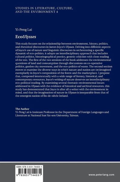 This study focuses on the relationship between environment, history, politics, and rhetorical discourses in James Joyce's Ulysses. Delving into different aspects of Joyce's use of nature and linguistic discourses in orchestrating a specific dynamic of eco-politics, it adopts an interdisciplinary approach that includes cultural politics, historiographical poetics, and genetic criticism with close reading of the text. The first of the two sessions of the book addresses the environmental questions of land and consumption through discussions on co-operative politics, garden city movement, and the eco-politics of waste. The second section moves to examine the diverse ways in which nature and nation are (re)imagined exemplarily in Joyce's composition of the forest and the marketplace.