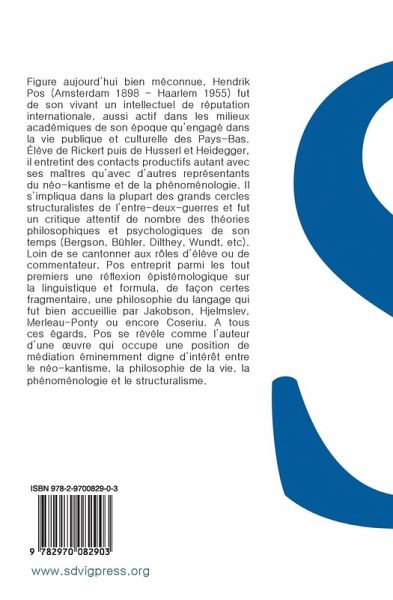 Le présent ouvrage est le premier recueil publié en français d'écrits du linguiste et philosophe néerlandais Hendrik Pos. Les seize textes proposés ici (en version originale pour la moitié d'entre eux, dans une traduction de l'allemand ou du néerlandais pour les autres) ont été choisis pour représenter la pensée de Pos de manière aussi complète que possible dans son extension diachronique. Thématiquement, une seule facette des travaux par ailleurs très divers de Pos a été prise en compte : ses réflexions sur le langage.