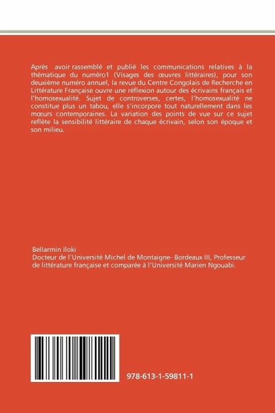 Après avoir rassemblé et publié les communications relatives à la thématique du numéro1 (Visages des uvres littéraires), pour son deuxième numéro annuel, la revue du Centre Congolais de Recherche en Littérature Française ouvre une réflexion autour des écrivains français et l homosexualité. Sujet de controverses, certes, l homosexualité ne constitue plus un tabou, elle s incorpore tout naturellement dans les m urs contemporaines. La variation des points de vue sur ce sujet reflète la sensibilité littéraire de chaque écrivain, selon son époque et son milieu.