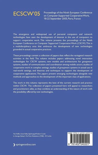 The emergence and widespread use personal computers and network technologies have seen the development of interest in the use of computers to support cooperative work. This volume presents the proceedings of the ninth European conference on Computer Supported Cooperative Work (CSCW). This is a multidisciplinary area that embraces the development of new technologies grounded in actual cooperative practices.