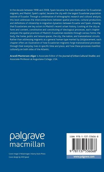 In the decade between 1998-2008, Spain became the main destination for Ecuadorian migrants, and Madrid, Spain's capital, became the city with the largest Ecuadorian population outside of Ecuador. Through a combination of ethnographic research and cultural analysis, this book addresses the interconnections between spatial practices, cultural production, and definitions of citizenship in migration dynamics between Ecuador and Spain, showing how Ecuadorians are key actors in Madrid's recent urban history. Looking at the city as form and content, constitutive and constituting of ideological processes, each chapter analyzes the spatial practices of Madrid's Ecuadorian residents through various forms: the body, the home, public and leisure spaces, the city, the nation, and transnational circuits. Rather than addressing migrants as a general human type marked by (dis)placement, each chapter offers an illustration of how Ecuadorian migrants forge transnational processes through their everyday lives in specific time and place, and how these processes manifest culturally on both sides of the Atlantic.