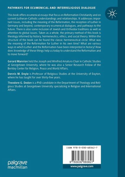 1.Gerd Theissen. "Open Temple and Dialogical Church: How to Fulfil the Reform of Paul and the Protestant Reformation?".- 2.Peter Neuner, "Martin Luther between His Message and the Celebration of His Fifth Centenary".- 3.Stephen Brown, "'Happy Birthday, Comrade Martin!' The 500th Anniversary of Luther's Birth and the Challenge to State Authority in the German Democratic Republic".- 4.Craig Phillips, "Freedom from the Law: From Luther to Agamben".- 5.Theodore Dedon, "The Invented Tradition of Far-Right Christianity".- 6.Amy Phillips, "Jewish and Christian Traditions of the Interpretation of Scripture according to Robert Bellarmine".- 7.Luc Forrestier, "Ecumenism and Jewish-Christian Dialogue: New Ways of Approaching Old Problems".- 8.Radu Bordeianu, "From Conflict to Communion: Ecclesiology at the Center of Recent Lutheran-Orthodox Dialogues and the 2016 Orthodox Council of Crete".- 9.Samuel Wagner, "A Lutheran Reflection on Lived Ecumenism".- 10.Gesa Thiessen, "Spreading the Word through the Image: Luther, Cranach, and the Reformation".- 11.Book Panel: Conversations with Bernhard Knorn, S.J.- 12.Leo Lefebure, "The Freedom of a Christian: Memory and Reconciliation".- 13.John Borelli, "Together in Hope for the Ecumenical Future".- 14.Peter Phan, "Ecumenical and Interreligious Dialogue at Vatican II and Its Aftermath: Charting the Way Forward".