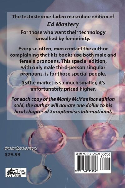 Let me be perfectly clear: ed is the standard Unix text editor. If you don’t know ed, you’re not a real sysadmin. Forty years after ed’s introduction, internationally acclaimed author Michael W Lucas has finally unlocked the mysteries of ed for everyone. With Ed Mastery, you too can become a proper sysadmin. Ed Mastery will help you: understand buffers and addresses insert, remove, and mangle text master file management and shell escapes comprehend regular expressions, searches, and substitutions create high-performance scripts for transforming files You must be at least this competent to use this computer. Read Ed Mastery today! Every so often, men contact the author complaining that his books use both male and female pronouns. This special edition, using only male third person pronouns, is for those special people. As the market is so much smaller, it’s unfortunately priced higher. For each copy of the Manly McManface edition sold, the author will donate one dollar to his local chapter of Soroptomists International.