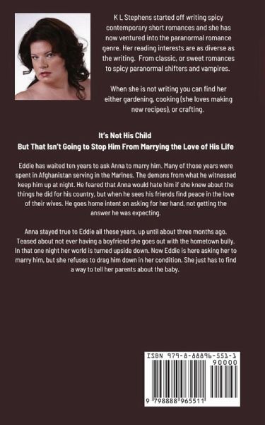 It's Not His Child But That Isn't Going to Stop Him From Marrying the Love of His Life Eddie has waited ten years to ask Anna to marry him. Many of those years were spent in Afghanistan serving in the Marines. The demons from what he witnessed keep him up at night. He feared that Anna would hate him if she knew about the things he did for his country, but when he sees his friends find peace in the love of their wives. He goes home intent on asking for her hand, not getting the answer he was expecting. Anna stayed true to Eddie all these years, up until about three months ago. Teased about not ever having a boyfriend she goes out with the hometown bully. In that one night her world is turned upside down. Now Eddie is here asking her to marry him, but she refuses to drag him down in her condition. She just has to find a way to tell her parents about the baby.