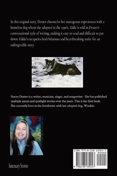 Eddie was a husky-shepherd mix hobo dog living on the streets when I met him. His introduction to "pet life" was full of common situations that for him, weren't common or even familiar. At all. This story chronicles his journey into our home that presented restrictions from the freedom of living on the streets. Would he like it? Would he stay? While there are certainly many wonderful books in the genre of memoir and pets, Eddie is unique in that weaves my own personal struggles as a woman in a troubled marriage with Eddie's own struggles to conform to a life in which his own personality must be tailored to fit in. Though caretaking and struggling relationships are both topics common to many women, few books address these topics in parallel with their dog. There are compelling similarities between my journey and Eddie's, as each chapter is sprinkled with ah-ha moments and life lessons.