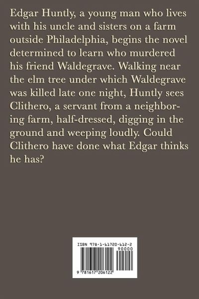 Edgar Huntly, a young man who lives with his uncle and sisters on a farm outside Philadelphia, begins the novel determined to learn who murdered his friend Waldegrave. Walking near the elm tree under which Waldegrave was killed late one night, Huntly sees Clithero, a servant from a neighboring farm, half-dressed, digging in the ground and weeping loudly. Could Clithero have done what Edgar thinks he has?