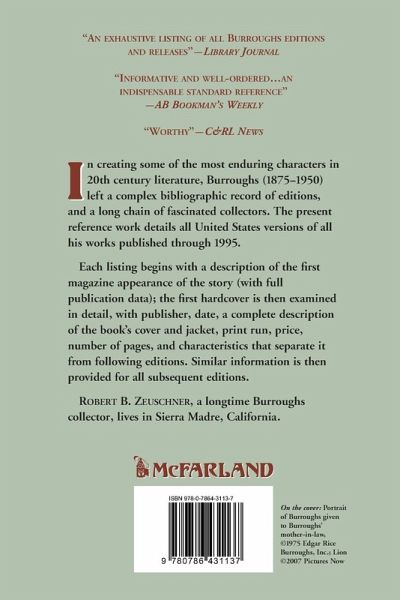 In creating some of the most enduring characters in 20th century literature, Burroughs (1875-1950) left a complex bibliographic record of editions, and a long chain of fascinated collectors. The present reference work details all United States versions of all his works published through 1995. Each listing begins with a description of the first magazine appearance of the story (with full publication data); the first hardcover is then examined in detail, with publisher, date, a complete description of the book's cover and jacket, print run, price, number of pages, and characteristics that separate it from following editions. Similar information is then provided from all subsequent editions.