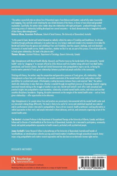 This book examines the community "mental health" sector by analysing concepts offered by Mad Studies and postcolonial, and feminist scholars. The authors demonstrate what postqualitative inquiry can do, surfacing the transformative potential of freely-given relationships between psychiatrised people and allies in the community.