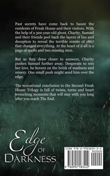 Past secrets have come back to haunt the residents of Freak House and their visitors. With the help of a 300 year-old ghost, Charity, Samuel and their friends peel back the layers of lies and deception to reveal the terrible events of 1867 that changed everything. At the heart of it all is a page of spells and two missing men. But as they draw closer to answers, Charity pushes Samuel further away. Desperate to win her love, he hovers on the brink of madness and misery. One small push might send him over the edge. The sensational conclusion to the Second Freak House Trilogy is full of twists, turns and heart wrenching moments that will stay with you long after you reach The End.