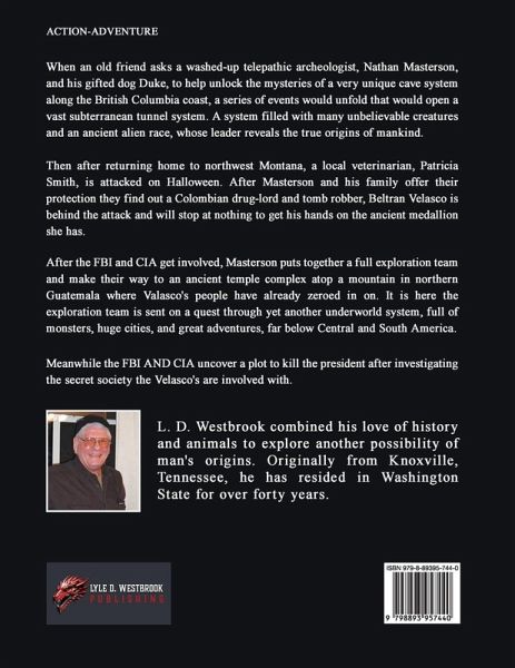 As "Star Wars," "Indiana Jones", and "Harry Potter", were for people of all ages. "Edge of Tomorrow" will also excite the imagination with thought provoking unanswered questions about the origins of mankind, religion, and history, while taking the reader on one adventure after another. When an old friend asks a washed-up telepathic archeologist, Nathan Masterson, and his gifted dog Duke, to help unlock the mysteries of a very unique cave system along the British Columbia coast, a series of events would unfold that would open a vast subterranean tunnel system. A system filled with many unbelievable creatures and an ancient alien race, whose leader reveals the true origins of mankind. Then after returning home to northwest Montana, a local veterinarian, Patricia Smith, is attacked on Halloween. After Masterson and his family offer their protection, they find out a Colombian drug-lord and tomb robber, Beltran Velasco is behind the attack and will stop at nothing to get his hands on the ancient medallion she has. After the FBI and CIA get involved, Masterson puts together a full exploration team and make their way to an ancient temple complex atop a mountain in northern Guatemala where Valasco's people have already zeroed in on. It is here the exploration team is sent on a quest through yet another underworld system, full of monsters, huge cities, and great adventures, far below Central and South America. Meanwhile, the FBI AND CIA uncover a plot to kill the president after investigating the secret society the Velasco's are involved with.
