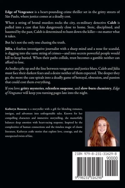 Edge of Vengeance is a heart-pounding crime thriller set in the gritty streets of São Paulo, where justice comes at a deadly cost. When a string of brutal murders rocks the city, ex-military detective Caleb is pulled into a case that hits dangerously close to home. Stoic, disciplined, and haunted by the past, Caleb is determined to hunt down the killer-no matter what it takes. But he's not the only one chasing the truth. Júlia, a fearless investigative journalist with a sharp mind and a nose for scandal, is digging into the same string of crimes-and into secrets powerful people would kill to keep buried. When their paths collide, trust becomes a gamble neither can afford to lose. As bodies pile up and the line between vengeance and justice blurs, Caleb and Júlia must face their darkest fears and a desire neither of them expected. The deeper they go, the more the case spirals into a deadly game of betrayal, obsession, and passion that could cost them everything. If you love gritty mysteries, relentless suspense, and slow-burn chemistry, Edge of Vengeance will keep you turning pages late into the night.