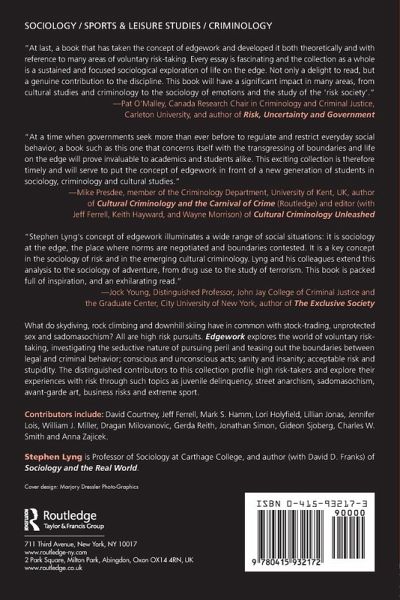 "Stephen Lyng's concept of edgework illuminates a wide range of social situations: it is sociology at the edge, the place where norms are negotiated and boundaries contested. It is a key concept in the sociology of risk and in the emerging cultural criminology. Lyng and his colleagues extend this analysis to the sociology of adventure, from drug use to the study of terrorism. This book is packed full of inspiration, and is an exhilarating read." -- Jock Young, John Jay College of Criminal Justice and the Graduate Center, City University of New York, author of The Exclusive Society