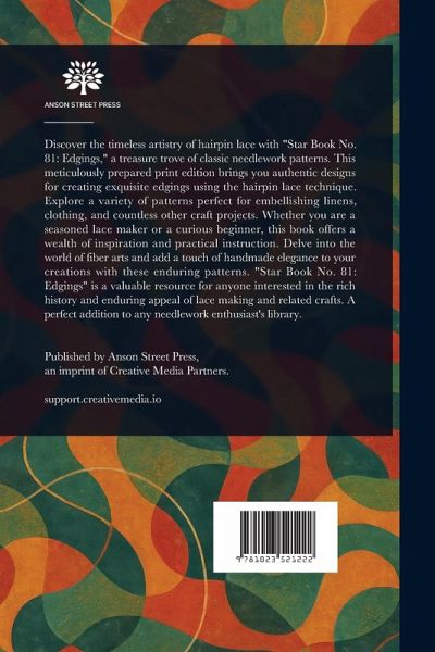 Discover the timeless artistry of hairpin lace with "Star Book No. 81: Edgings," a treasure trove of classic needlework patterns. This meticulously prepared print edition brings you authentic designs for creating exquisite edgings using the hairpin lace technique. Explore a variety of patterns perfect for embellishing linens, clothing, and countless other craft projects. Whether you are a seasoned lace maker or a curious beginner, this book offers a wealth of inspiration and practical instruction. Delve into the world of fiber arts and add a touch of handmade elegance to your creations with these enduring patterns. "Star Book No. 81: Edgings" is a valuable resource for anyone interested in the rich history and enduring appeal of lace making and related crafts. A perfect addition to any needlework enthusiast's library. This work has been selected by scholars as being culturally important, and is part of the knowledge base of civilization as we know it. This work is in the public domain in the United States of America, and possibly other nations. Within the United States, you may freely copy and distribute this work, as no entity (individual or corporate) has a copyright on the body of the work. Scholars believe, and we concur, that this work is important enough to be preserved, reproduced, and made generally available to the public. We appreciate your support of the preservation process, and thank you for being an important part of keeping this knowledge alive and relevant.
