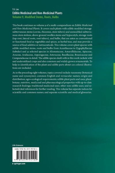 Volume 9 is part of a multicompendium Edible Medicinal and Non-Medicinal Plants, on plants with edible modified stems, roots and bulbs from Acanthaceae to Zygophyllaceae (tabular) and 32 selected species in Alismataceae, Amaryllidaceae, Apiaceae, Araceae, Araliaceae, Asparagaceae, Asteraceae, Basellaceae, Brassicaceae and Campanulaceae in detail. This work is of significant interest to medical practitioners, pharmacologists, ethnobotanists, horticulturists, food nutritionists, botanists, agriculturists, conservationists, and general public. Topics covered include: taxonomy; common/ vernacular names; origin/ distribution; agroecology; edible plant parts/uses; botany; nutritive/medicinal properties, nonedible uses and selected references.