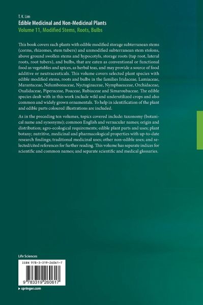 This book covers such plants with edible modified storage subterranean stems (corms, rhizomes, stem tubers) and unmodified subterranean stem stolons, above ground swollen stems and hypocotyls, storage roots (tap root, lateral roots, root tubers), and bulbs, that are eaten as conventional or functional food as vegetables and spices, as herbal teas, and may provide a source of food additive or neutraceuticals. This volume covers selected plant species with edible modified stems, roots and bulbs in the families Iridaceae, Lamiaceae, Marantaceae, Nelumbonaceae, Nyctaginaceae, Nymphaeaceae, Orchidaceae, Oxalidaceae, Piperaceae, Poaceae, Rubiaceae and Simaroubaceae. The edible species dealt with in this work include wild and underutilized crops and also common and widely grown ornamentals.To help in identification of the plant and edible parts coloured illustrations are included.