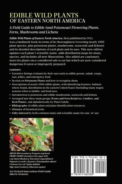 Edible Wild Plants of Eastern North America: Identifying and Using the Edible Wild Plants of the Eastern United States and Eastern Canada, first published in 1943, was a landmark book in terms of its thoroughness (covering nearly 1000 plant species, plus poisonous plants, mushrooms, seaweeds and lichens) and its detailed descriptions of each plant and their uses. This extensively revised (2020) full-color edition updates each plant's scientific name, adds distribution maps for many species, includes new information, and all new illustrations. Also added are cautionary notes for plants once considered safe to eat but which are now considered dangerous if eaten or improperly prepared. Separate chapters cover poisonous plants, edible plants, edible and poisonous mushrooms, and edible seaweeds and lichens.