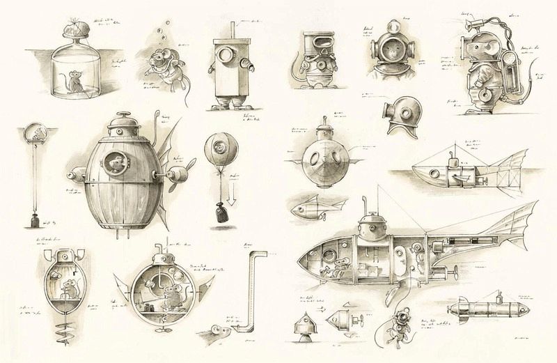 Mithilfe seines Professors tüftelt und bastelt er, um den ersten Tauchgang in der Geschichte der Mausheit zu wagen.