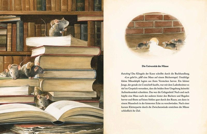 Die kleine, mutige Maus, die so schnell nicht aufgibt, und der hilfsbereite Mäuse-Professor wachsen dem Leser sofort ans Herz.