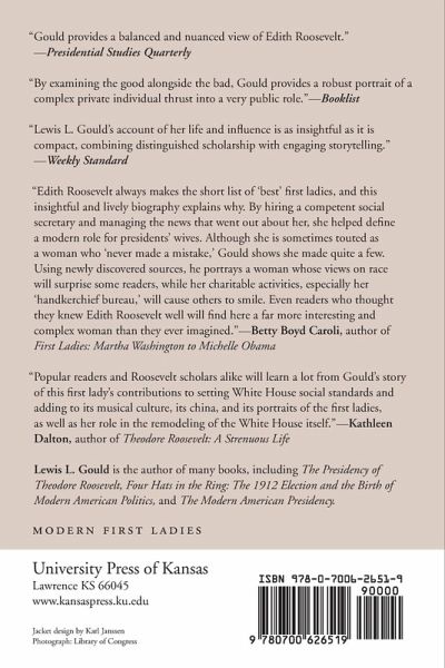 Few first ladies have enjoyed a better reputation among historians than Edith Kermit Roosevelt. Aristocratic and sophisticated, tasteful and discreet, she managed the White House with a sure hand. Her admirers say that she never slipped in carrying out her duties as hostess, mother, and adviser to her husband. Lewis Gould's path-breaking study, however, presents a more complex and interesting figure than the somewhat secularized saint Edith Roosevelt has become in the literature on first ladies. While many who knew her found her inspiring and gracious, family members also recalled a more astringent and sometimes nasty personality. Gould looks beneath the surface of her life to examine the intricate legacy of her tenure from 1901 to 1909. The narrative in this book thus uncovers much new about Edith Roosevelt. Far from being averse to activism, Edith Roosevelt served as a celebrity sponsor at a New York musical benefit and also intervened in a high-profile custody dispute. Gould traces her role in the failed marriage of a United States senator, her efforts to secure the ambassador from Great Britain that she wanted, and the growing tension between her and Helen Taft in 1908-1909. Her commitment to bringing classical music artists to the White House, along with other popular performers, receives the fullest attention to date. Gould also casts a skeptical eye over the area where Edith Roosevelt's standing has been strongest, her role as a mother. He looks at how she and her husband performed as parents and dissents from the accustomed judgment that all was well with the way the Roosevelt offspring developed. Most important of all, Gould reveals the first lady's deep animus toward African Americans and their place in American society. She believed ""that any mixture of races is an unmitigated evil."" The impact of her bigotry on Theodore Roosevelt's racial policies must now be an element in any future discussion of that sensitive subject. On balance, Gould finds that Edith Roosevelt played an important and creative part in how the institution of the first lady developed during the twentieth century. His sprightly retelling of her White House years will likely provoke controversy and debate. All those interested in how the role of the presidential wife has evolved will find in this stimulating book a major contribution to the literature on a fascinating president. It also brings to life a first lady whose legacy must now be seen in a more nuanced and challenging light.