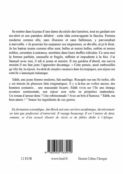 Edith, une jeune femme moderne, fait naufrage. Rescapée sur une île isolée, elle y est témoin de plusieurs faits énigmatiques. Il y a là-bas un voilier ancien, des hommes costumés... une mascarade bizarre. Edith vivra sur l'île une étrange aventure sentimentale, son séjour sera riche en péripéties inattendues. Un roman d'amour donc? Une robinsonnade? Avec un brin d'humour, "Edith, ma bien-aimée! brasse les ingrédients de ces genres.