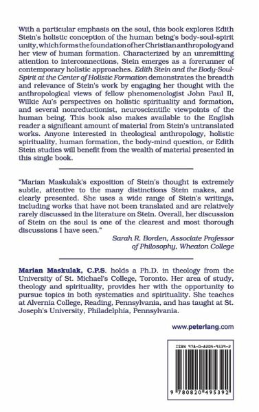 «Marian Maskulak's exposition of Stein's thought is extremely subtle, attentive to the many distinctions Stein makes, and clearly presented. She uses a wide range of Stein's writings, including works that have not been translated and are relatively rarely discussed in the literature on Stein. Overall, her discussion of Stein on the soul is one of the clearest and most thorough discussions I have seen.» (Sarah R. Borden, Associate Professor of Philosophy, Wheaton College)
