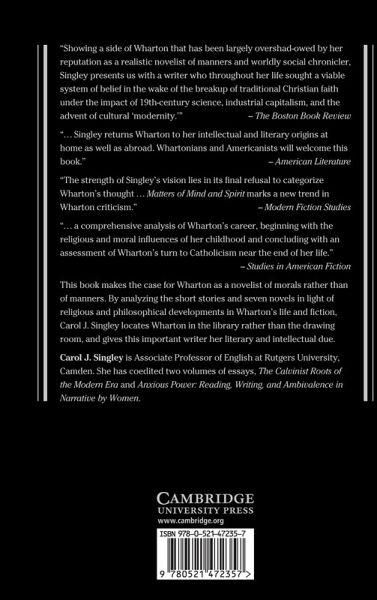 Edith Wharton: Matters of Mind and Spirit considers Wharton as a novelist of morals rather than manners, a novelist who in the exercise of writing sought answers to profound spiritual and metaphysical questions. Carol Singley analyzes the short stories and seven novels in light of Wharton's religious and philosophical development and her attitudes toward Anglicanism, Calvinism, Transcendentalism, and Catholicism. Singley situates Wharton in the context of turn-of-the-century science, historicism, and aestheticism, reading her religious and philosophical outlook as an evolving response to the cultural crisis of belief. She further invokes the dynamics of class and gender as central to Wharton's quest, describing the ways in which the author accepted and yet transformed both the classical and Christian traditions that she inherited.