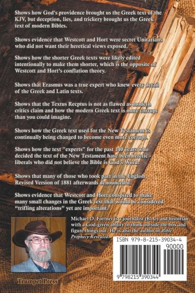 (Version 1.4 March, 2023) The KJV Only (KJO) believers accuse modern Bibles of being corrupt because they remove many words and phrases and even whole verses, removing enough text to equal 1st and 2nd Peter, and make many other changes. So the author investigated the issue. The question he set out to answer was, are the claims of the KJO believers accurate, or are the modern Bibles more accurate than the KJV? The author never expected his investigation to turn into a book, because there are already several books supporting both sides. However, his skill-set is thinking outside the box and figuring things out, as seen in his other books. As such, he has some new insights and surprising discoveries to offer. The reader will learn that the Greek text of the KJV is not as corrupt as we have been told and that modern Bibles are far more corrupt than you would ever imagine. Westcott and Hort, the creators of the questioned Greek New Testament text, both despised evangelicals and their literal view of Scripture. There are many quotes from them proving their liberal unbelief. Though they were officially Anglican bishops, they were actually secret Unitarians because only members of the Church of England could be college professors or hold a government job. So they kept their liberal unbelief a secret, but it was revealed after their deaths by the publication of their private letters. Their purpose was to produce a liberal Bible that Unitarians, then and today, love. The advocates for the modern Bible versions want us to believe that all the modern Bibles are the authentic Words of God, even though they are all different. The modern translations pretty much include or leave out what they want, since that was how the Greek master-text was created. It causes people to doubt the reliability of the Bible, and to doubt the truth of Christianity. Apparently, God cannot make up his mind what he wants to say, so he says whatever these "experts" want him to say, and it changes with each new edition of the Greek master-text, and each new translation that comes out.