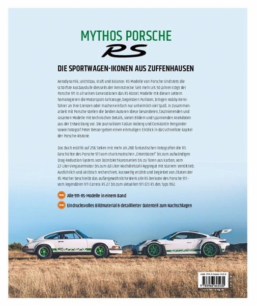 50 Jahre 911 Carrera RS: Aus diesem Anlass beleuchten die Profi-Automobil-Journalisten Constantin Bergander und Fabian Hoberg in ihrem neuen Werk die faszinierende Geschichte der RS-Modelle von Porsche. Aerodynamik, Leichtbau, Kraft und Balance: RS-Modelle von Porsche sind stets die schärfste Ausbaustufe diesseits der Rennstrecke. Seit mehr als 50 Jahren trägt der Porsche 911 in all seinen Generationen das RS-Kürzel. Modelle mit diesen Lettern homologieren die Motorsport-Fahrzeuge, begeistern Puristen, bringen Hobby-Rennfahrer an ihre Grenzen oder machen einfach nur unheimlich viel Spaß.In Zusammenarbeit mit Porsche stellen die beiden Autoren diese besonderen, faszinierenden und rasanten Modelle mit technischen Details, vielen Bildern und spannenden Anekdoten aus der Entwicklung vor. Die Autoren geben zusammen mit Fotograf Peter Besser einen einmaligen Einblick in das schnellste Kapitel der Porsche-Historie.Das Buch erzählt auf 256 Seiten mit mehr als 280 fantastischen Fotografien die RS-Geschichte des Porsche 911 vom charismatischen "Entenbürzel" bis zum aufwändigen Drag-Reduction-System, von Dünnblechkarosserien bis zu Türen aus Karbon, vom 2,7-Liter-Vergasermotor bis zum 4,0-Liter-Hochdrehzahl-Aggregat mit starrem Ventiltrieb. Ausführlich und akribisch recherchiert, kurzweilig erzählt und begleitet von Zitaten der RS-Macher beschreibt das außergewöhnliche Werk alle RS-Derivate des Porsche 911 - vom legendären 911 Carrera RS 2.7 bis zum aktuellen 911 GT3 RS des Typs 992.Fazit: Ein kiloschwerer, edler Prachtband im Großformat, der hochinformative Text, die ausführlichen technischen Daten und das emotionale Bildmaterial ergeben ein ganz besonderes Buch für ein besonderes Stück Porsche-Geschichte!
