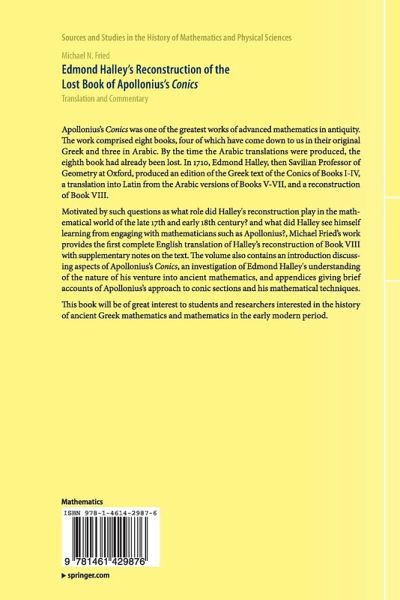 The present work provides the first complete English translation of Halley's reconstruction of Book VIII with supplementary notes on the text. It also contains 1) an introduction discussing aspects of Apollonius's Conics 2) an investigation of Edmond Halley's understanding of the nature of his venture into ancient mathematics, and 3) an appendices giving a brief account of Apollonius's approach to conic sections and his mathematical techniques.
