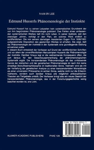 In this book, Nam-In Lee reconstructs the Phänomenologie der Instinkte on the basis of the already published works and, above all, of the unpublished manuscripts of Husserl. Moreover, he draws out the consequences which the Phänomenologie der Instinkte bears for the whole system of phenomenology. Transcendental phenomenology, in its form of a genetic phenomenology of which the Phänomenologie der Instinkte is the concluding part, can, according to him, no longer be considered as one-sided philosophy of consciousness in the traditional sense, as it has often been thought of hitherto. Thus, the author presents a new face of phenomenology; one which has scarcely been noticed in the field of Husserl studies until now.
