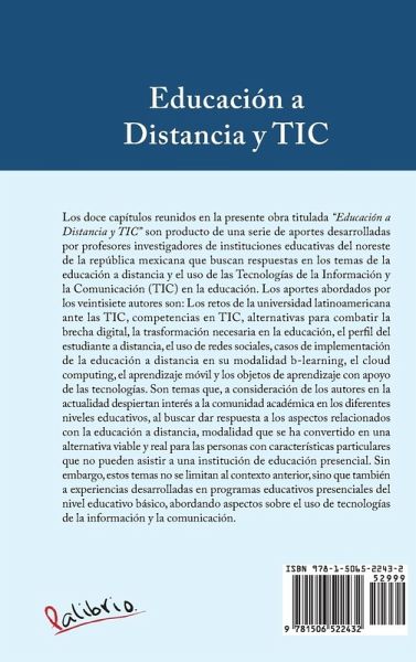 Los doce capítulos reunidos en la presente obra titulada "Educación a Distancia y TIC" son producto de una serie de aportes desarrolladas por profesores investigadores de instituciones educativas del noreste de la república mexicana que buscan respuestas en los temas de la educación a distancia y el uso de las Tecnologías de la Información y la Comunicación (TIC) en la educación. Los aportes abordados por los veintisiete autores son: Los retos de la universidad latinoamericana ante las TIC, competencias en TIC, alternativas para combatir la brecha digital, la trasformación necesaria en la educación, el perfil del estudiante a distancia, el uso de redes sociales, casos de implementación de la educación a distancia en su modalidad b-learning, el cloud computing, el aprendizaje móvil y los objetos de aprendizaje con apoyo de las tecnologías. Son temas que, a consideración de los autores en la actualidad despiertan interés a la comunidad académica en los diferentes niveles educativos, al buscar dar respuesta a los aspectos relacionados con la educación a distancia, modalidad que se ha convertido en una alternativa viable y real para las personas con características particulares que no pueden asistir a una institución de educación presencial. Sin embargo, estos temas no se limitan al contexto anterior, sino que también a experiencias desarrolladas en programas educativos presenciales del nivel educativo básico, abordando aspectos sobre el uso de tecnologías de la información y la comunicación.