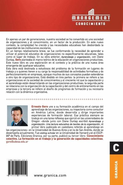 En apenas un par de generaciones, nuestra sociedad se ha convertido en una sociedad de organizaciones y el conocimiento, en un factor de la producción. En este nuevo contexto, la complejidad ha crecido y las necesidades educativas han desbordado la capacidad de las instituciones escolares. En un tiempo relativamente breve, se fue conformando la necesidad de aprender a utilizar el potencial educativo de organizaciones no específicamente educativas, tales como el lugar de trabajo. En su obra anterior, Aprendizaje y organización, con Diane Dunlap, Gore planteaba el marco teórico de la educación en organizaciones productivas. Este nuevo libro es una exploración en el contexto y la práctica de una nueva área emergente del quehacer educativo. Esta obra está destinada a estudiosos del problema de la formación en lugares de trabajo y a quienes tienen a su cargo la responsabilidad de actividades formativas y de perfeccionamiento en empresas, aunque muchos de sus conceptos puedan extenderse a otro tipo de organizaciones. Está dividido en tres partes: la primera se refiere a las organizaciones en la sociedad de conocimientos y al creciente rol que la capacitación y el aprendizaje están desarrollando en las organizaciones productivas; la segunda parte se relaciona con la organización de la capacitación y del centro de entrenamiento en las empresas y la tercera se refiere al diseño de programas de formación y su necesaria relación con la dinámica organizativa.